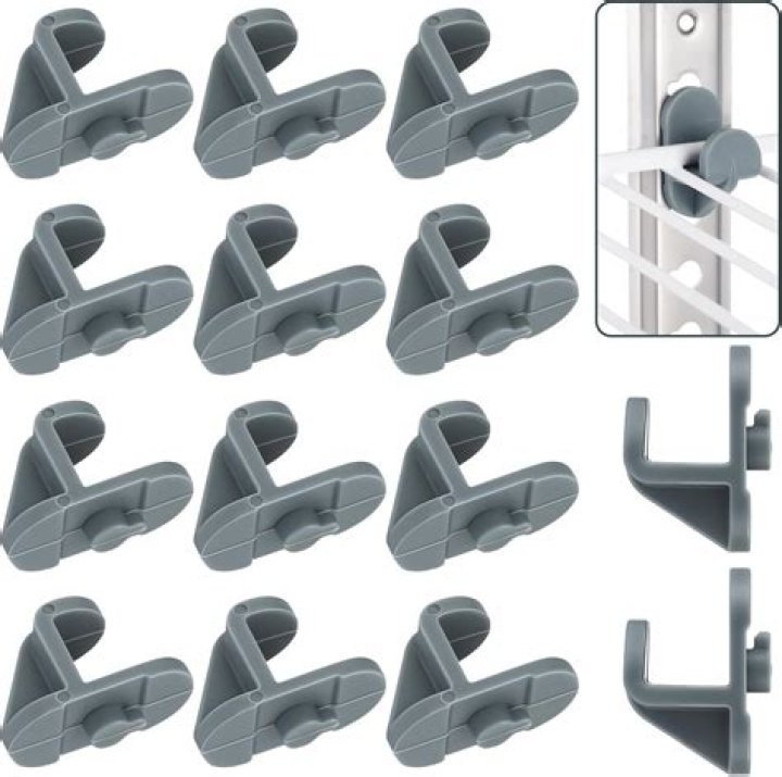 Place a clip at the desired height where you wish to install a shelf. Pinch the clip as you did before. There is a small extension at the top of the clip that has a 90-degree bend in it. Insert it into one of the bracket slots.