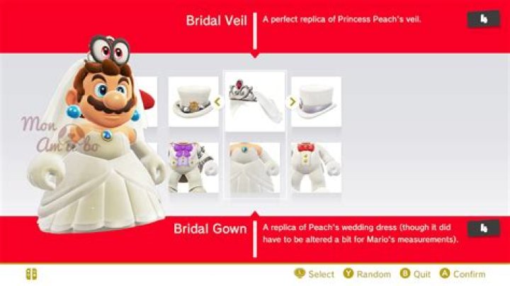 Super Mario Odyssey amiibo features Bowser (Wedding Outfit): Unlocks Bowser wedding outfit and reveals location of regional coins. Mario (Wedding Outfit): Unlocks Mario wedding outfit and grants temporary invincibility. Peach (Wedding Outfit): Unlocks Peach wedding outfit and gives a Life-Up Heart.