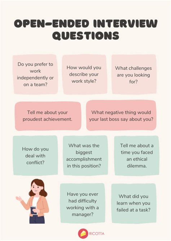 For example, one of the most commonly asked open-ended questions is actually a statement: "Tell me about yourself." There are many other kinds of open-ended interview question types, including anecdotal interview questions (in which you recount a previous work experience) and competency questions (in which you explain