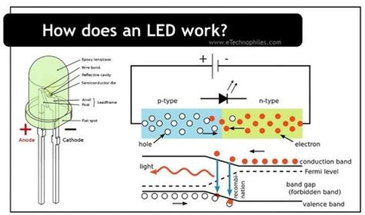 A light-emitting diode (LED) is asemiconductor light source that emits light whencurrent flows through it. Electrons in the semiconductor recombinewith electron holes, releasing energy in the form of photons.Modern LEDs are available across the visible, ultraviolet, andinfrared wavelengths, with high light output..