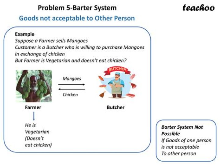 One may also ask, what are the problems faced by barter system? The main difficulty of barter system is the lack of double coincidence of wants. In a barter system a person who wants to exchange his goods must find some person who is willing to exchange his commodity with his commodity. For example, a person possessed wheat, which he wanted to exchange for cloth.