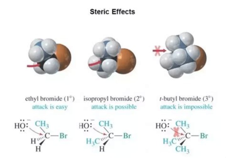 Steric effects are the effects seen in molecules that come from the fact that atoms occupy space. An example of steric effects is steric hindrance. This is when a large group in a molecule makes reactions not work. For example, an SN2 reaction does not happen on carbon atoms that have three substituents.What makes a strong Nucleophile?
