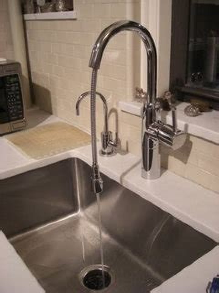 It should have a long enough tap to reach over the sink — ideally with the spout above the center of the bowl — and the tap should have a minimum of 1-inch clearance above the sink rim.