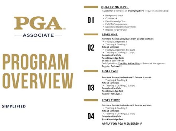 Complete 36 hours of work experience credits along with the level kits. You receive twelve credits for a four-year college degree and six credits for a two-year college degree. Earn one credit per month by working under a PGA professional. After completing your work experience credits and Level 3, you are a PGA member.