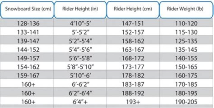 Snowboard Size Chart| Rider Height (in) | Rider Height (cm) | Snowboard Size (cm) |