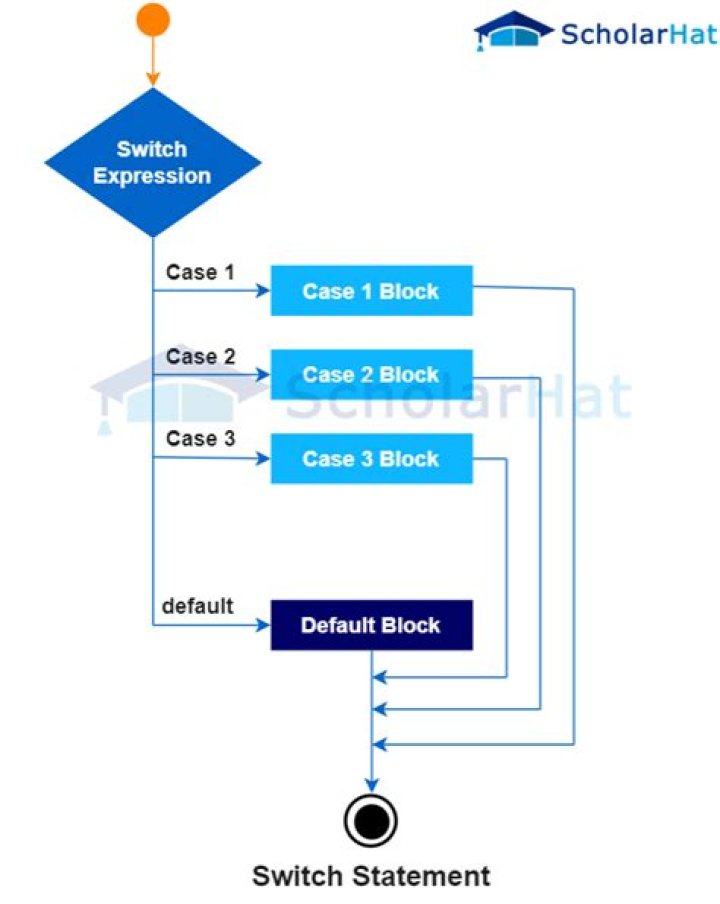 - If Case = Option 2, then STATEMENT 2 is executed, followed by a break to exit the switch case.