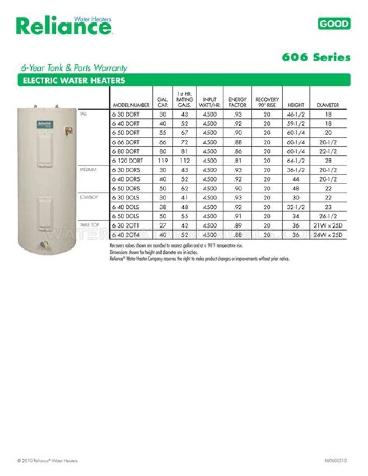 How many gallons is a reliance 606 water heater?