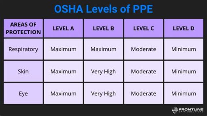 The 4 PPE Levels include: Level A: According to OSHA Level A PPE should be worn when, “when the greatest level of skin, respiratory, and eye protection is required.” This type of protective equipment is needed for dealing with highly toxic and dangerous chemicals such as ammonia. Chemical resistant steel-toe and boots.