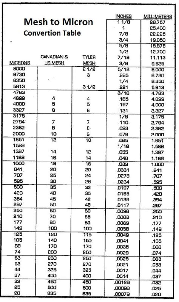 Grit, Mesh, And Micron Conversion Chart| Grit (American Standard) | Mesh | Micron |