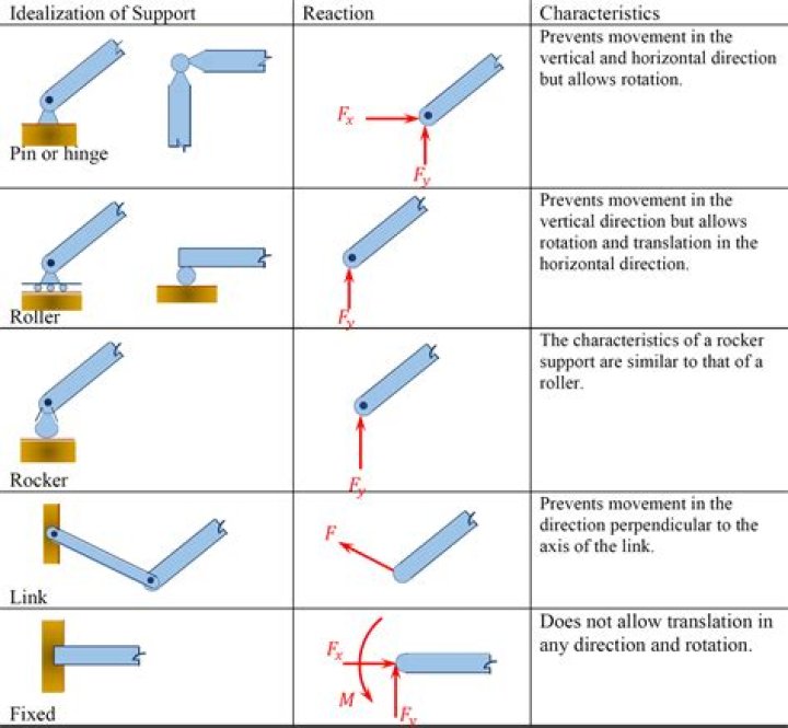 A hinge has two unknown reaction forces and two unknown reaction moments along the coordinate axes that are perpendicular to the axis of the hinge. There is also a reaction force along the axis of the hinge (i.e. does not slide along the z-axis).What is hinge in structure?