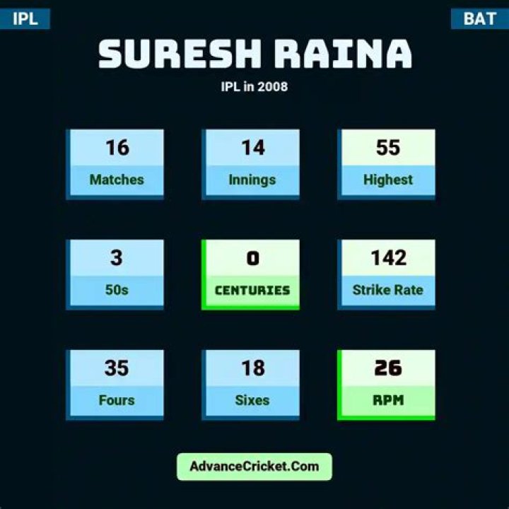 He became the first player in the history of IPL to cross the mark of 2000 IPL runs. For his performances in 2012, he was named in the Cricinfo IPL XI. In 2013, IPL Raina scored 548 runs at a healthy average of 42.15 and strike rate of 150.13.