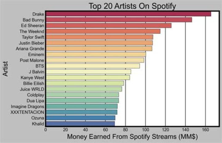 The reason that the actual payout to an artist can be small is because Spotify users pay a fixed amount per month no matter how many songs they listen to. Free users listen to more ads when they listen longer, but each ad doesn't provide much revenue back.What type of art makes the most money?