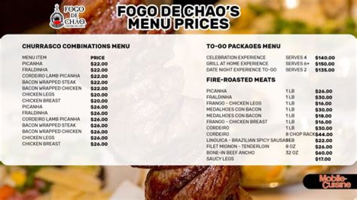 The full Churrasco experience is our prix-fixe menu which includes continual service of our fire-roasted meats carved tableside by Brazilian trained gaucho chefs, including house specialties like Picanha(signature sirloin), Filet Mignon, Ribeye, Fraldinha (Brazilian sirloin) Cordeiro (lamb) and more.What is Fogo power?