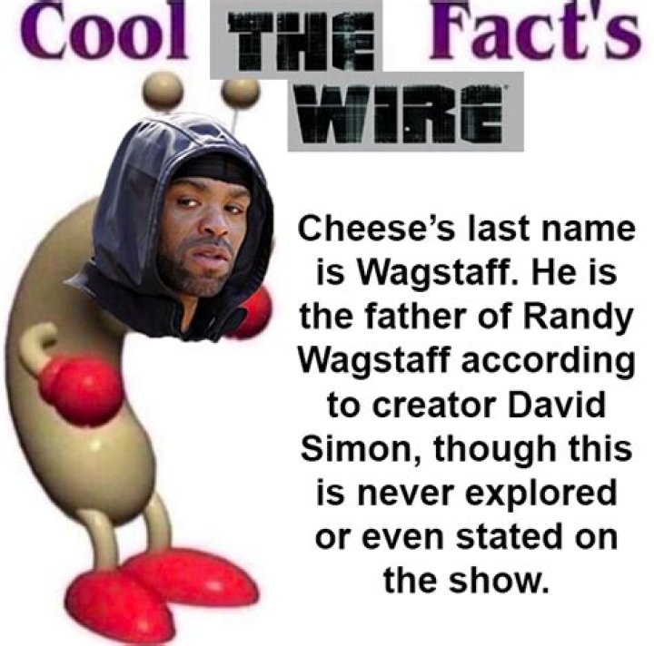 Cheese Wagstaff. Calvin "Cheese" Wagstaff(Named "Melvin Flagstaff" during Season 2) was a African-Americandrug dealer, on the HBO television series The Wire. He isportrayed by hip hop recording artist Method Man.