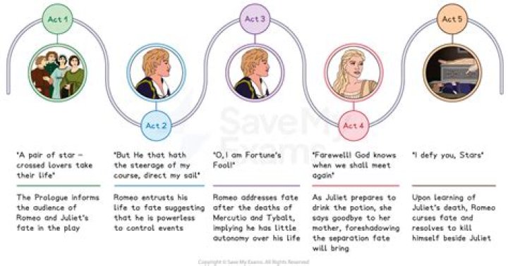 The prologue introduces the theme of fate when the lovers are called star-crossed and death-marked . This means that the events of their lives, and their deaths, are somehow already decided. Later when Juliet looks at Romeo from the balcony she is upset that she sees him as one dead in the bottom of a tomb .