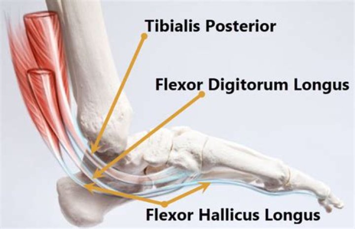 The tibialis posterior is a muscle in the lower leg. The tendon from this muscle runs behind the inside bone on the ankle (called the medial malleolus), across the instep and attaches to the bottom of the foot. Sometimes the tendon becomes stretched and inflamed.