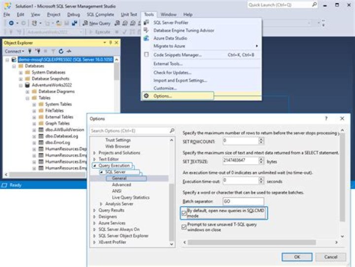 To enable SQLCMD mode, click the SQLCMD Mode option under the Query menu: Another way to enable the SQLCMD Mode is by using a combination of keys ALT+Q+M from the keyboard. In SSMS, there is an option to set the query windows to be opened in the SQLCMD mode by default.What port does Sqlcmd use?
