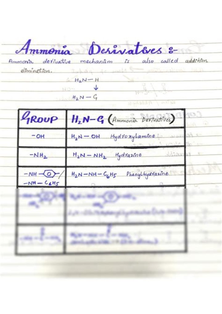 Acetone will react with ammonia. Acetone will act as an Lewis Acid and ammonia will act as a Lewis Base in this situation. The nitrogen in NH3 is very reactive because of its lone pair of electrons(The nitrogen is delta -ve), so it will attack the carbon cation center of the acetone (which is delta +ve).What derivative of aldehydes and ketones is known as a Schiff base?