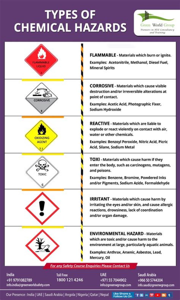 Beside above, what are the two types of chemical hazards? In the workplace there are two types of chemical hazards: health hazards and physicochemical hazards.