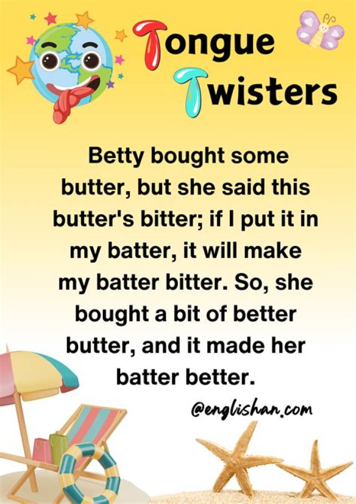 Likewise, can you tell me some tongue twisters? Children love tongue twisters and challenge their friends to try to say them fast several times in row.