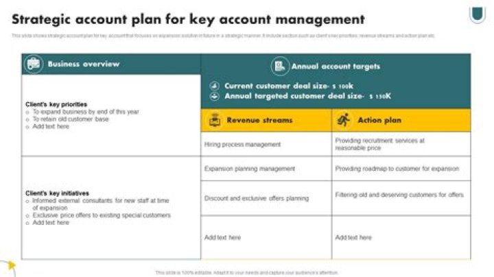 A sales account plan is a single document that contains important details about a new prospect or existing customer, including information about their decision-making process, the companies you're competing with to close them, and your overall strategy to win them over (and retain them).What is a strategic manager job description?