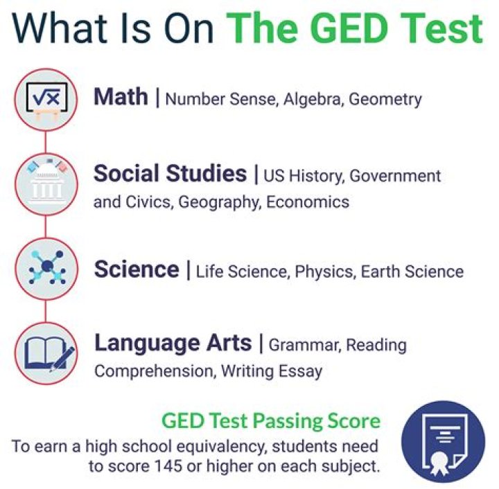 The GED test covers five core subject areas: mathematics, social studies, science, reading and writing.