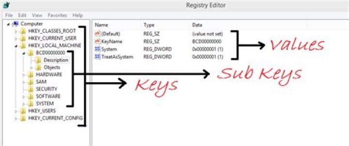 The registry is a hierarchical database that contains data that is critical for the operation of Windows and the applications and services that run on Windows. The data is structured in a tree format. Each node in the tree is called a key. Each key can contain both subkeys and data entries called values.