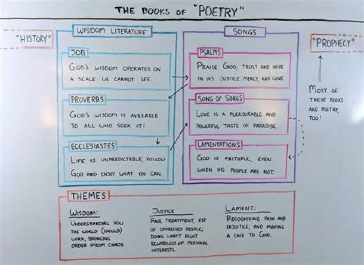 One may also ask, what are the poetry and wisdom books of the Bible? The five books of the Poetic and Wisdom Writing Books of the Bible are Job, Psalms, Proverbs, Ecclesiastes and the Song of Solomon.