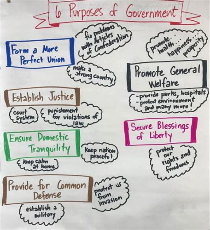 In general, there are four main purposes of government: to establish laws, maintain order and provide security, protect citizens from external threats, and promote the general welfare by providing public services.