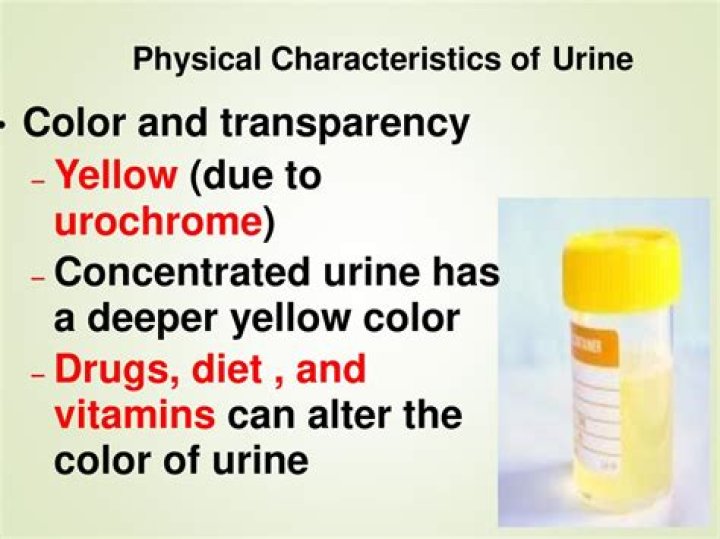 One may also ask, what is the cause of yellow urine? Urine color generally ranges from a pale-yellow color to deep amber. This coloring is primarily caused by the pigment urochrome, also known as urobilin. The more water you drink, and the more hydrated you become, the lighter the pigment in your urine.