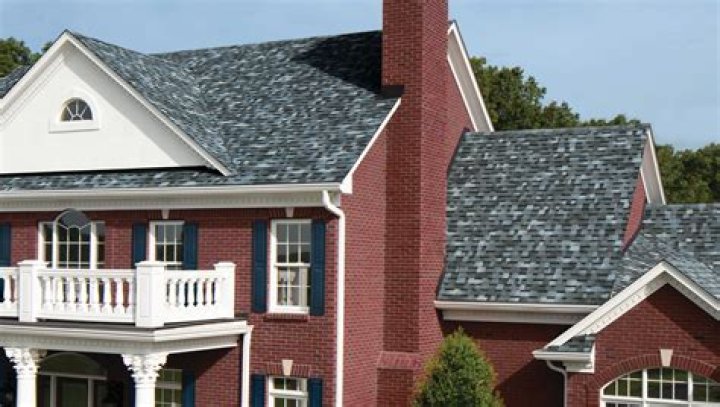 Suggested shingle colors for red brick houses: dark brown, black, grey, green. Shown are IKO Royal Estate Premium Designer shingles in Shadow Slate. This roof's contrasting hues of light and dark grey go great with the neutral, light grey siding.How do you match roof color with brick?