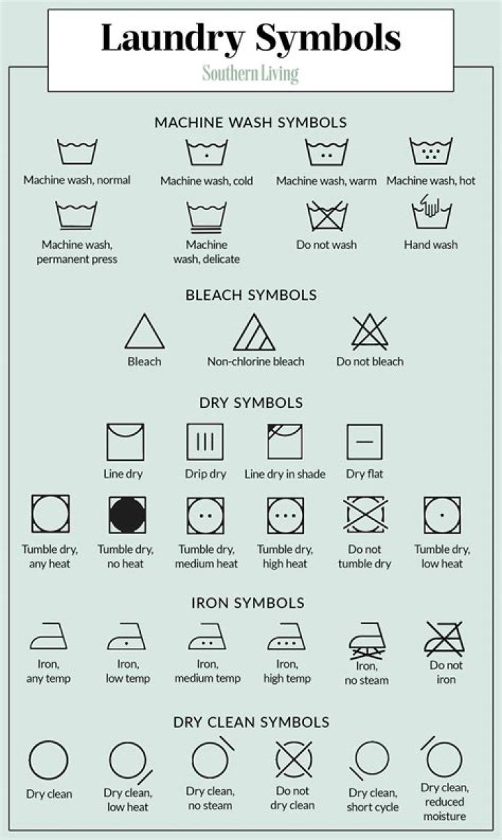 Washing Symbols: Basic Washing Instructions on Care Labels Wash Symbol: Depicted as a bucket filled with water, the Wash Symbol tells you what temperature or machine setting you should use to wash the item of clothing.Can I put jeans in the dryer?