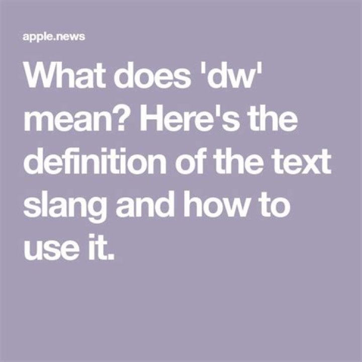 The next most common meaning for DW is "Don't Worry". (It is particularly common on messaging apps like Snapchat and WhatsApp.) For example: Tony: I was a real pain last night.