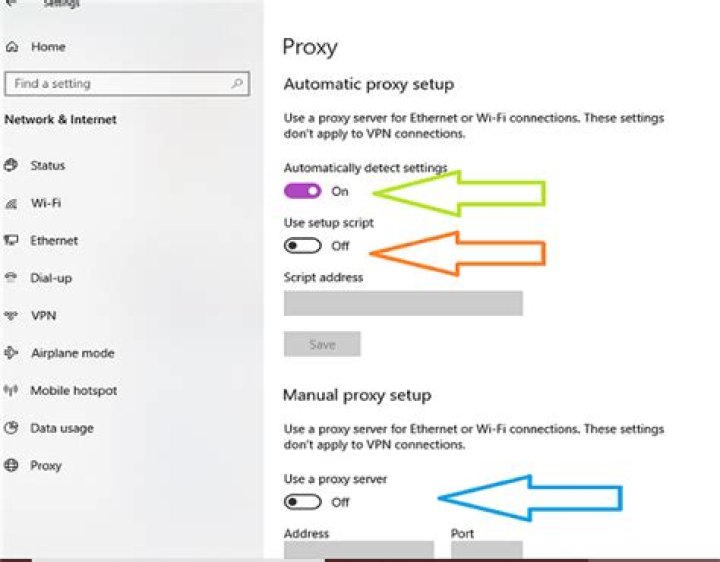 Under “Local Area Network (LAN) settings”, click on LAN settings. Under “Automatic configuration”, uncheck Automatically detect settings. Also make sure Use a proxy server for your LAN is unchecked too. Click OK, and OK.How do I find my proxy address and port for WIFI?