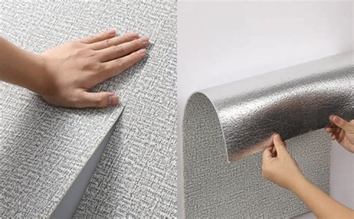 Self-adhesive wallpaper is peeled from a backing, applied to the wall, and can be easily removed and repositioned.