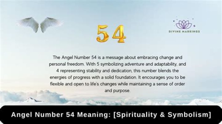 ANGEL NUMBER 54. Angel Number 54 is a message from your angels that the ideas, thoughts and desires you have been experiencing are an indication that it is time to prioritize your life and make the necessary changes in order to align yourself with your soul mission and life purpose..