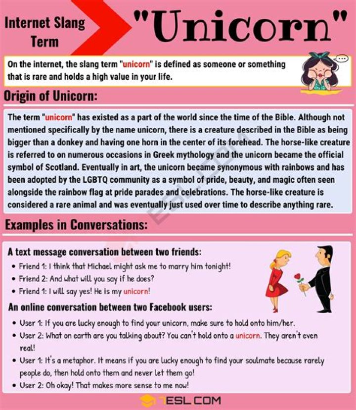 A Unicorn can refer to a man or a woman and is often used to describe the perfect catch or perfect partner. A Unicorn is a mythical creature, someone amazing who is hard to catch or simply a very rare find.What is a male unicorn called?