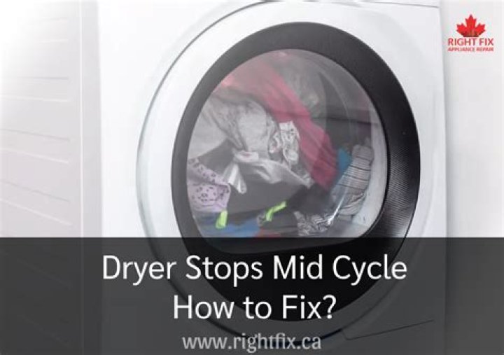 Dryer: Starts then stops. If an electric dryer starts but then stops before the load is dry, a clogged exhaust vent may have caused the dryer to overheat and trip the thermal fuse. A bad drive motor, failed timer or faulty electronic control board can also stop the dryer before the cycle ends.