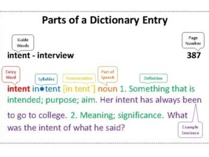 What are the parts of dictionary and its meaning?
