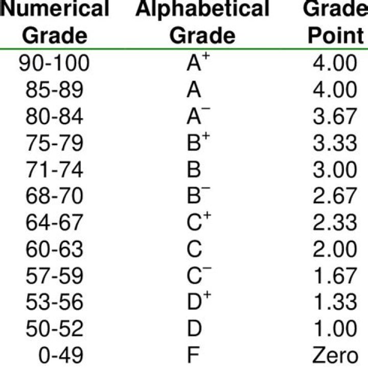 | Letter Grade | Percent Grade | 4.0 Scale |