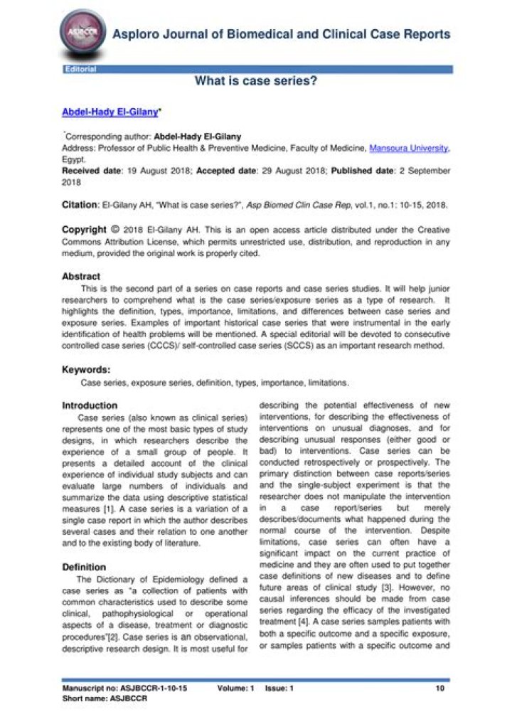 Ten Steps to Writing an Effective Case Report (Part 1)- Step 1: Identify the Category of Your Case Report. An unexpected association between diseases or symptoms.