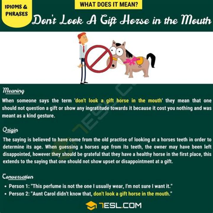 Related Question AnswersWhy shouldn't you look a gift horse in the mouth?