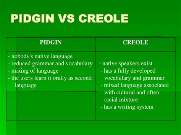 A hybrid of English and local languages, it traces its roots to the Atlantic slave trade in the 17th century. More than 75 million people are believed to speak pidgin across Nigeria, Ghana, Cameroon and Equatorial Guinea.What do you mean by Creole?