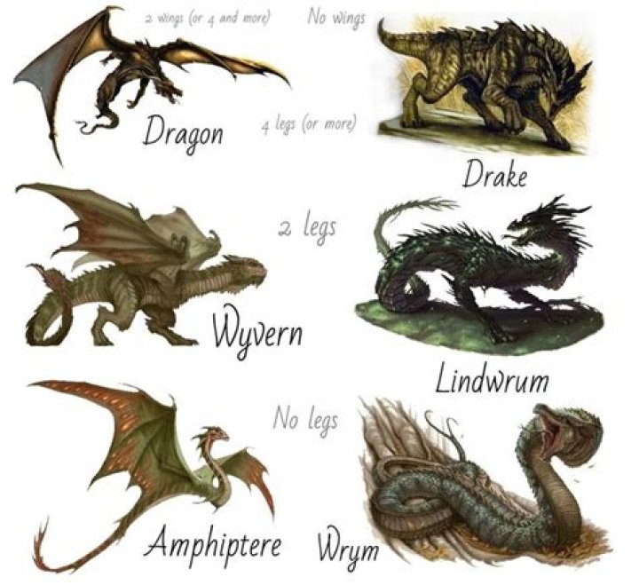Most of the remaining population is a new breed of dragons called the Wyvern. They are still powerful, but they are a very different creature. The first difference you'll notice is the legs; dragons have four legs, while Wyvern only have two. The front legs of the Wyvern are fused to its wings, very much like arms.How many types of dragons are there?