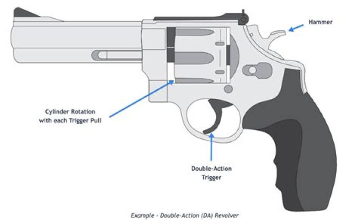 Double-Action Revolver (DA) In a double-action revolver, pulling the trigger generates two actions: First, the hammer is pulled back to the cocked position while the cylinder is being rotated to the next round, followed by the second action where is the hammer is released, striking the firing pin.What is a single action pistol mean?
