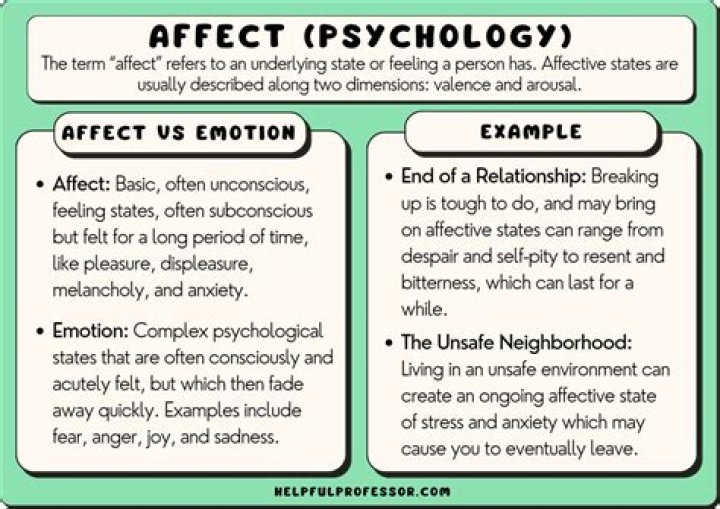 A person's affect is the expression of emotion or feelings displayed to others through facial expressions, hand gestures, voice tone, and other emotional signs such as laughter or tears. Individual affect fluctuates according to emotional state.How do you know when to use effect or affect?