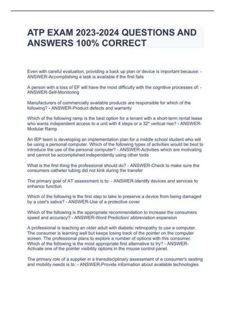 Assistive Technology Professional (ATP) Certification The ATP certification recognizes demonstrated competence in analysing the needs of consumers with disabilities, assisting in the selection of appropriate assistive technology for the consumers' needs, and providing training in the use of the selected devices.