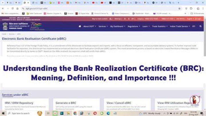 Electronic Bank Realization Certificate (BRC) or eBRC is issued by banks to the exporter for the purpose of claiming benefits under the various schemes of the Foreign Trade Policy. Using the eBRC platform, banks can electronically transmit foreign exchange realization from banks to the DGFT server.