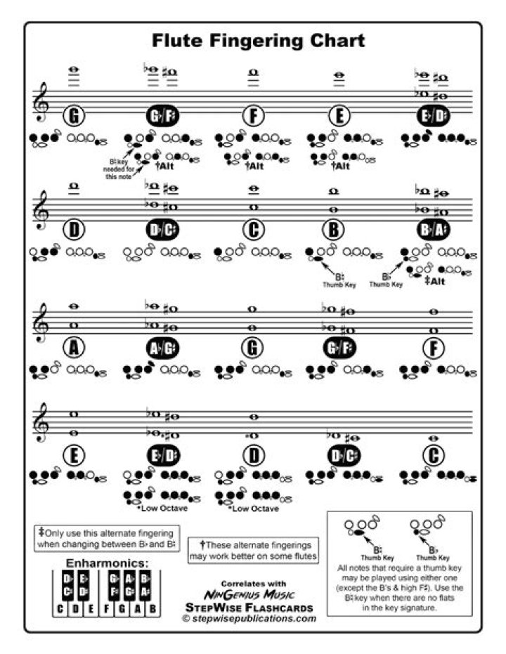 Learn Flute Notes in a Logical Order This includes the notes B flat, C, D, E flat, F,G, A, and then an additional B flat. For your very firstnotes, learning A, B flat, and C (all on the staff) can alsobe a good option. A has four keys depressed.Can you play chords on a flute?