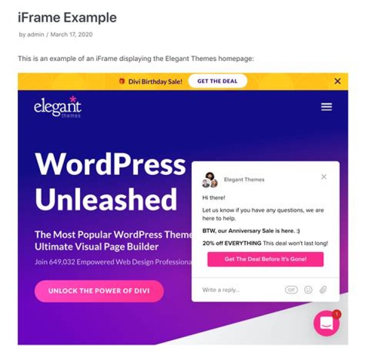 EMBED is basically the same as IFRAME, only with fewer attributes. Formally, EMBED is an HTML 5 tag, but on several browsers it will also work for HTML 4.01, if you are using this. It just cannot be validated. As always HTML 5 is recommended for the pages.What is iframe Chatid used for?